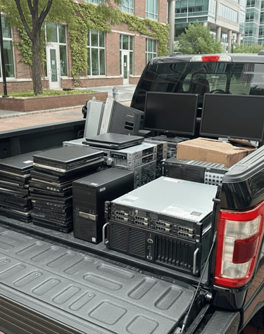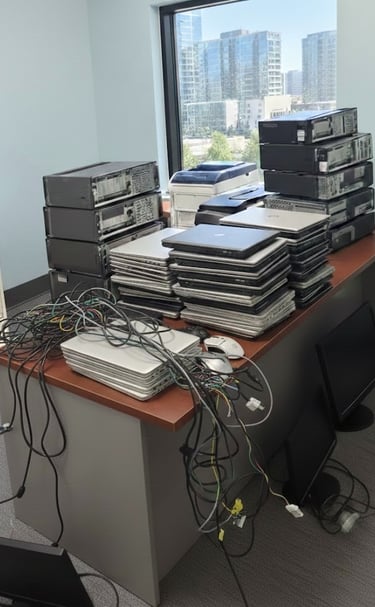 At ecleanout, we provide free, responsible recycling of laptops, desktops, servers and old tech across New Jersey, ensuring a sustainable approach to electronic waste. Our talented and dedicated team of recycling plant partners are committed to environmental conservation and sustainability by carefully processing these devices, diverting them from landfills and repurposing their components whenever possible. We believe in making a positive impact on our community and the planet, offering services that not only aid in decluttering your space but also support comprehensive eco-friendly practices. By choosing ecleanout, you are contributing to a greener future, one device at a time. We are also focused on educating our customers about responsible disposal and the importance of recycling electronics, helping to raise awareness and promote better practices throughout the region. Our mission is not only to serve, but to inspire a movement towards a more sustainable lifestyle for everyone. Join us in our journey towards a cleaner, more sustainable tomorrow!