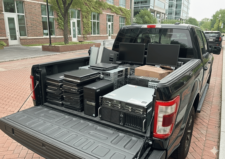 Stop letting that pile of computer junk take over your office or garage! Most disposal companies will charge you a premium just to show up, but at ecleanout, we believe clearing out your old tech should be easy and profitable. Our professional team brings the truck right to your door for a completely free pickup. We handle all the heavy lifting, loading, and logistics while the "other guys" are still busy writing up an invoice. Save your money and your back—we provide the muscle and the wheels at zero cost to you!