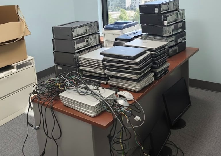 Got a pile of old tech junk taking up space? Don’t pay some big corporation a "disposal fee" to haul it away—let ecleanouts pay you instead! We see the value in your dusty laptops, old towers, and tangled components. Each piece of tech, no matter how outdated, has potential value. We turn your unwanted clutter into cold, hard cash on the spot. Whether it's laptops that have seen better days, desktops gathering dust, or even those wires and peripherals that are long forgotten, we are here to help you clear your space and put cash in your hands. It’s the fastest, easiest, and most rewarding way to get paid for items that were once considered trash!